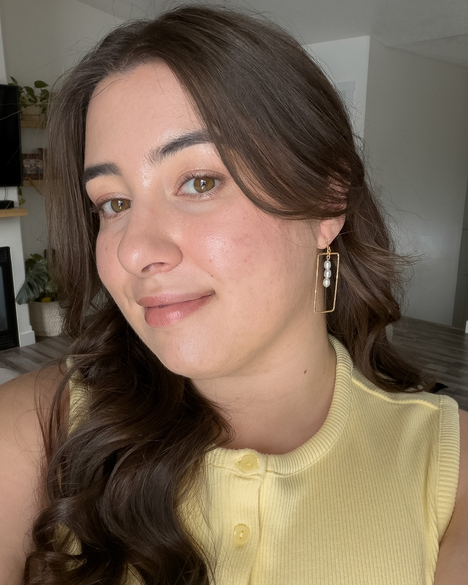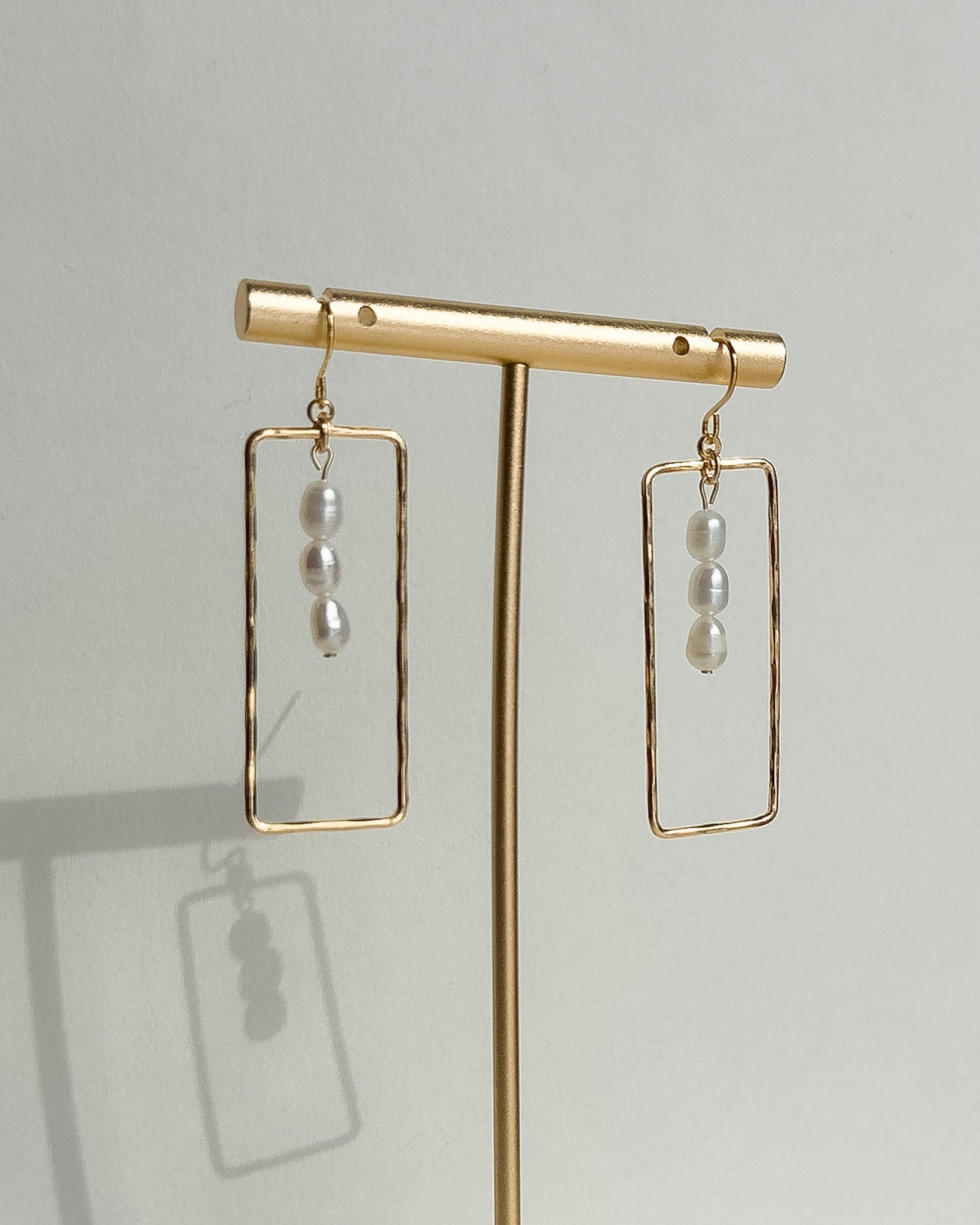 Handmade gold plated brass earrings with pearl accents