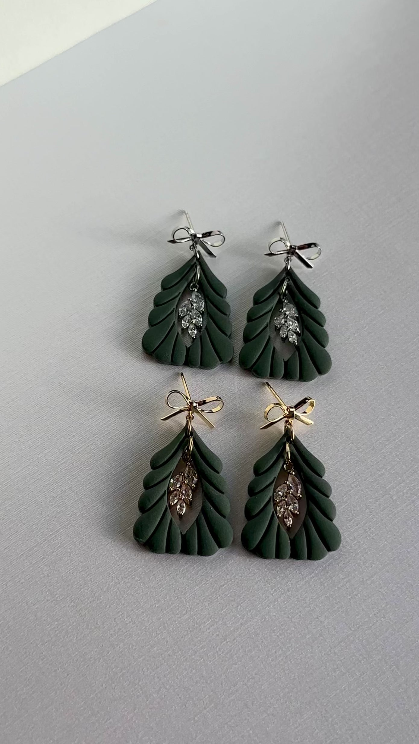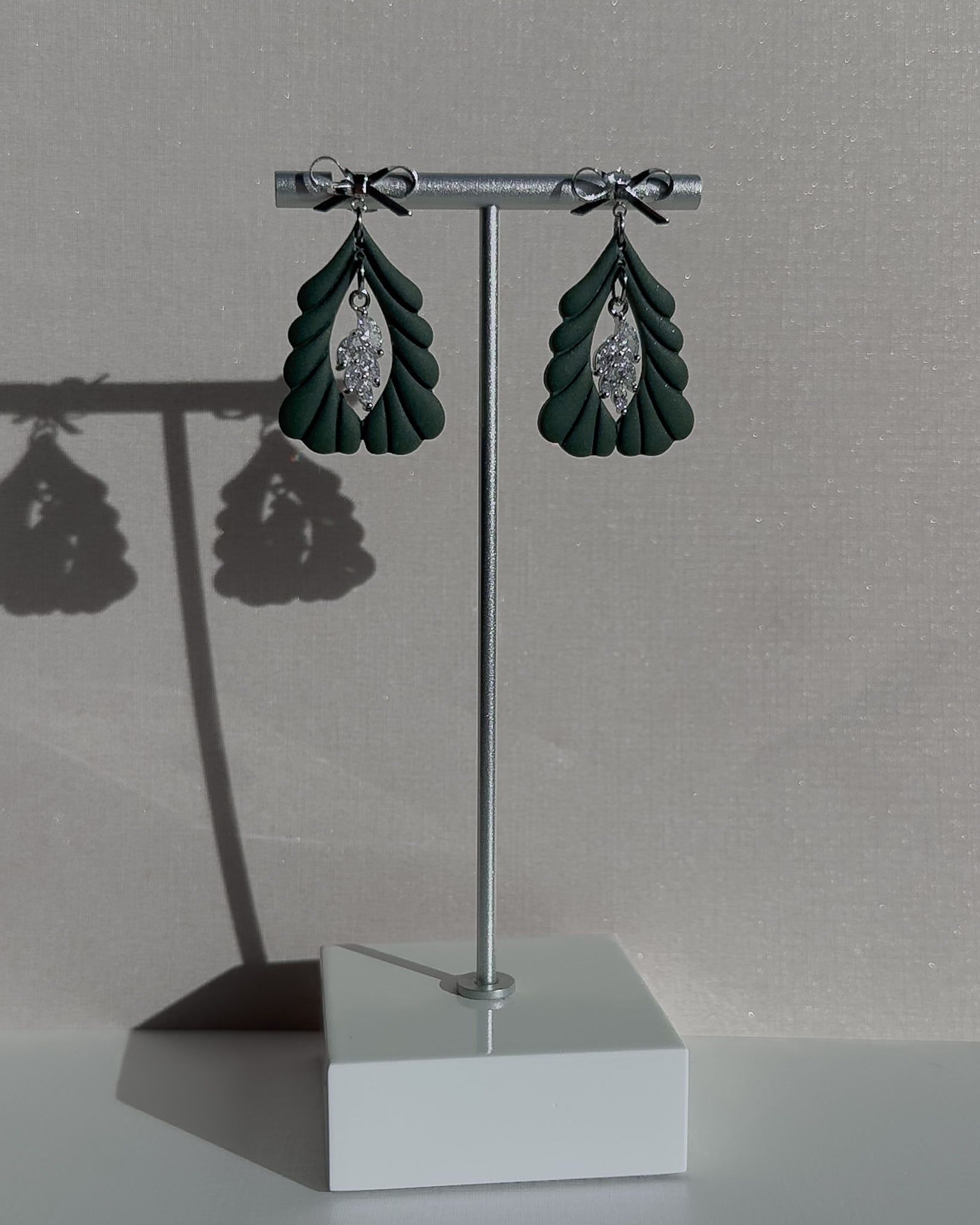 Handmade polymer clay earrings with silver plated cubic zirconia charms