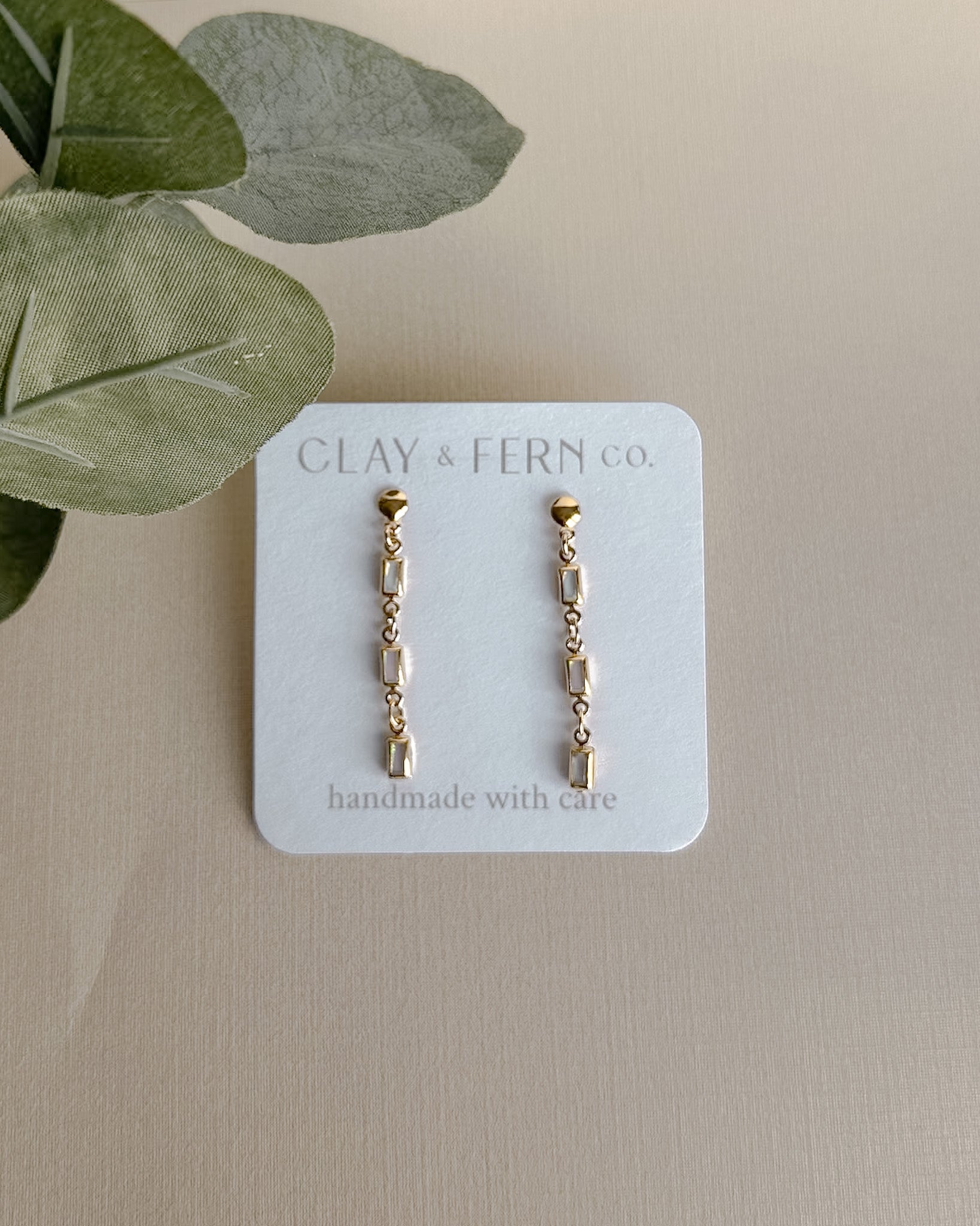 These earrings are absolutely perfect for my wedding. When I found the perfect bracelet on Etsy, i went looking on the Clay and Fern website and found matching earrings, I was so excited. These are beautiful, well made, + shipped out very fast. Thank you so much!!!!!