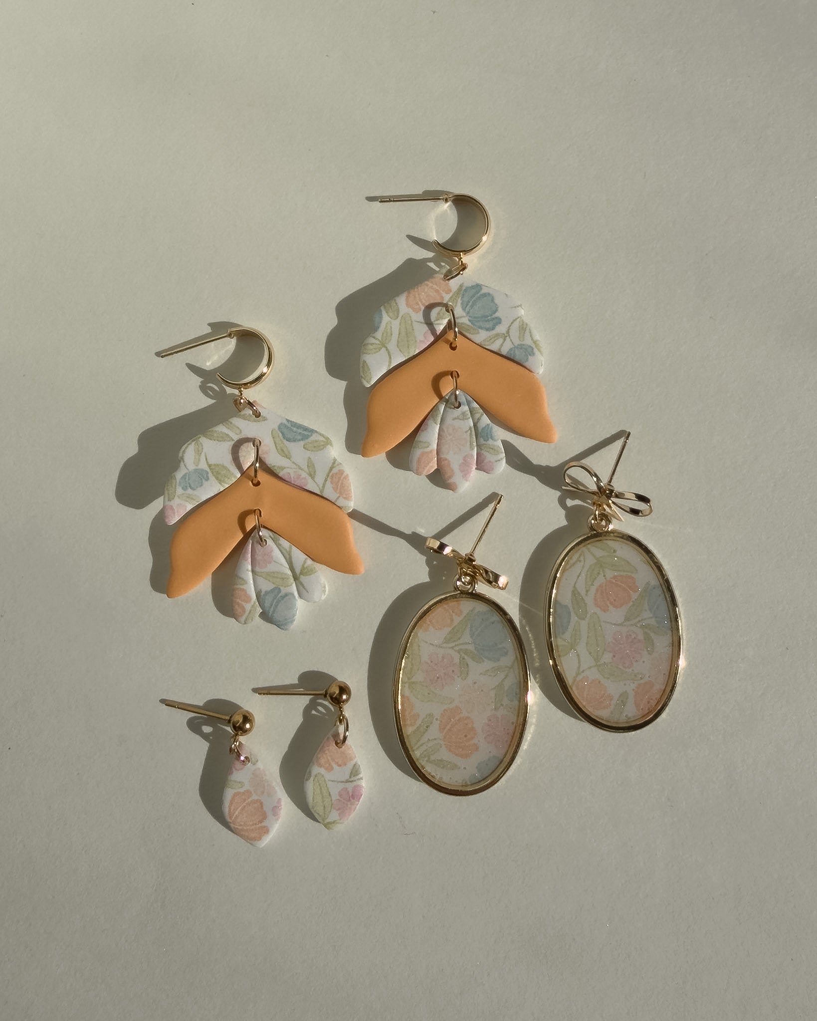 Handmade polymer clay earrings with floral design & shiny resin finish