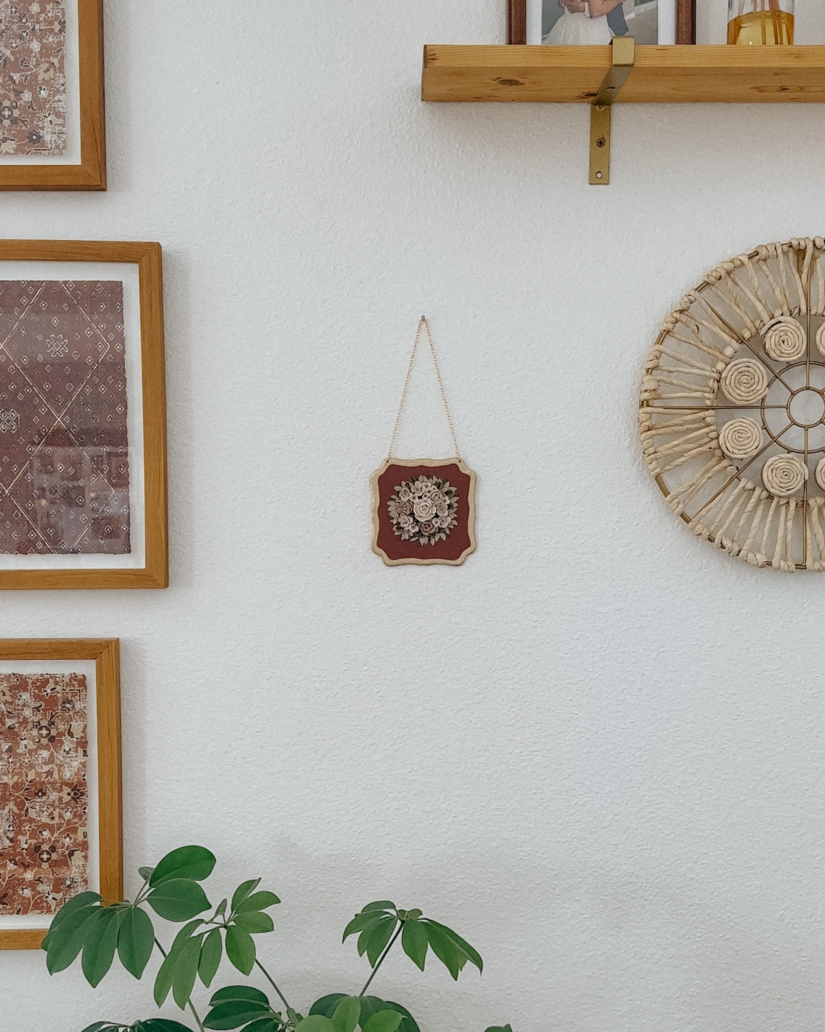 Handmade polymer clay wall hanging with hand sculpted flowers & gold filled chain