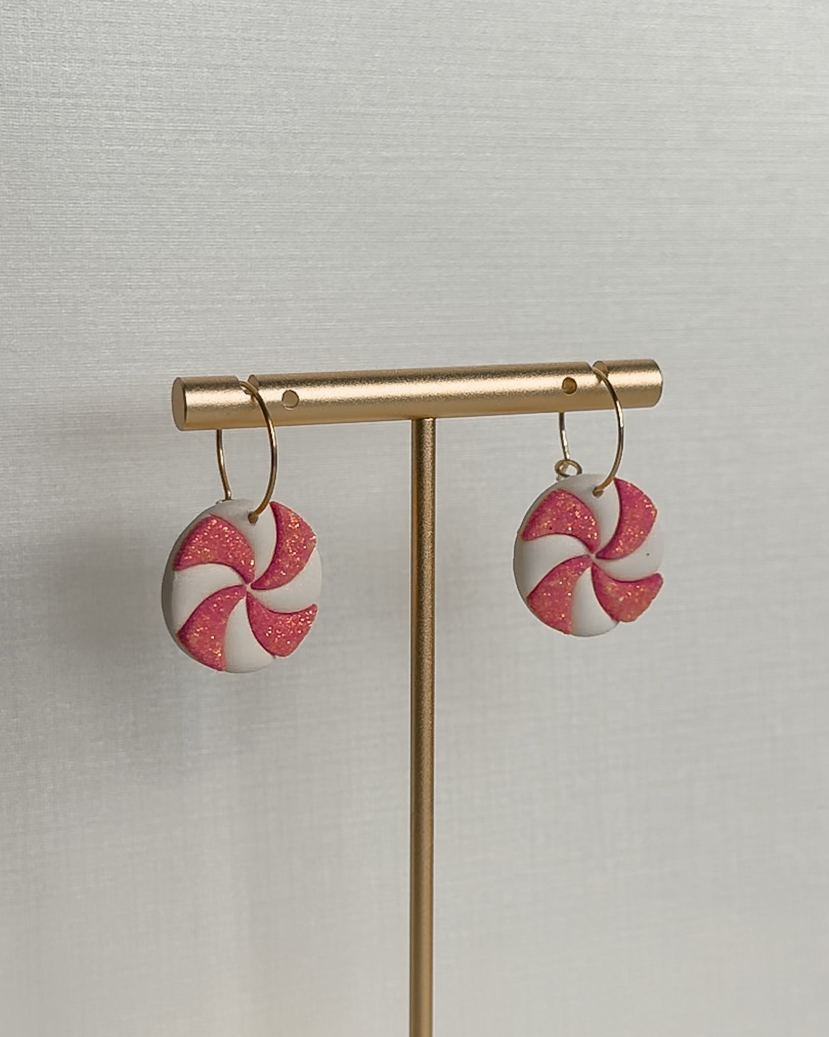Handmade polymer clay earrings with glitter accent & gold or silver plated surgical steel hoop