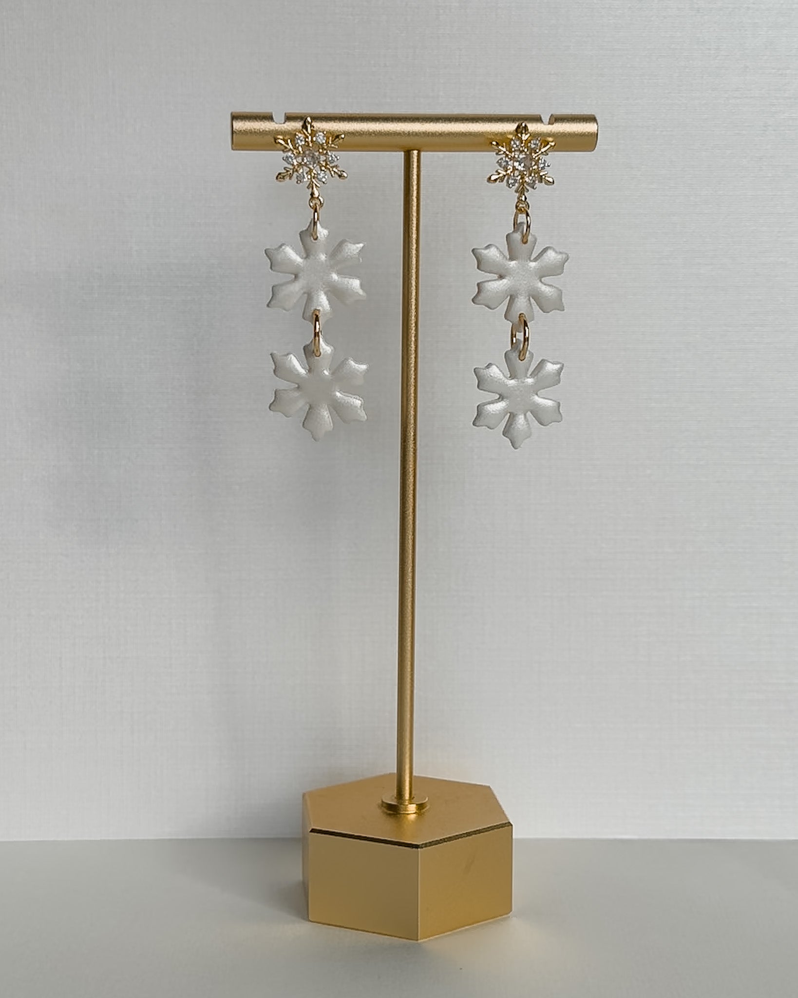 Handmade polymer clay snowflake earrings with gold plated cubic zirconia charm